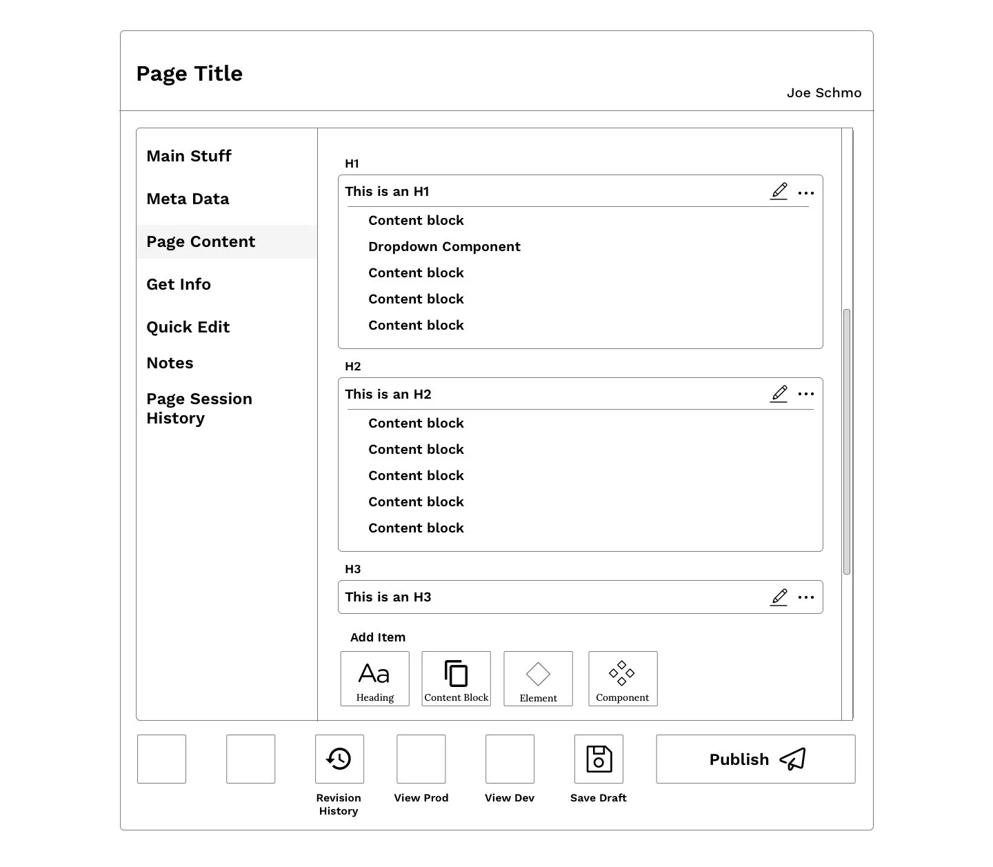 I switched to a more familiar content input structure, similar to WordPress, Squarespace and others. Content is no longer hidden within expandable sections, and it appears in the CMS how it would (relatively) on the live website.