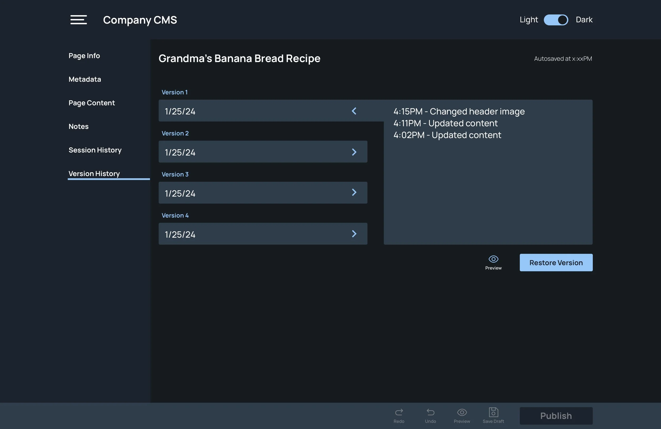 Page version history