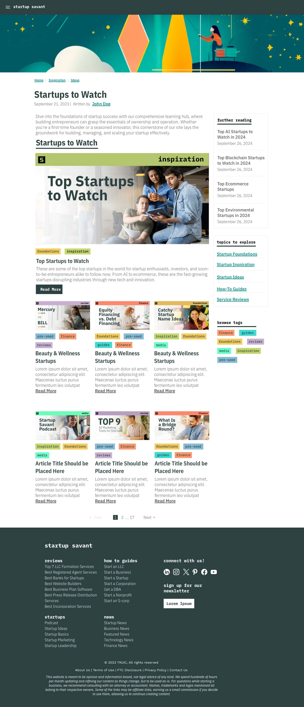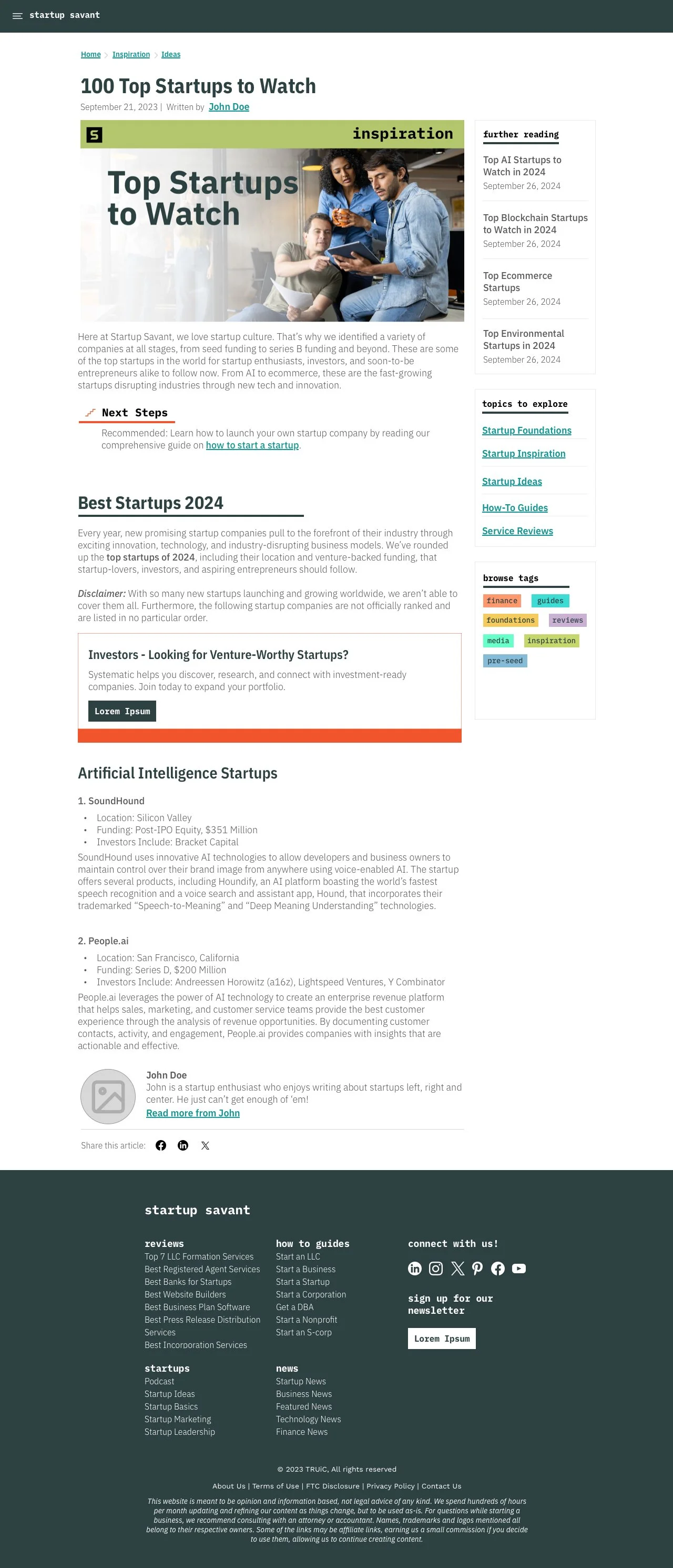 It had been many years since Startup Savant was redesigned. The navigation and site structure no longer fit the needs of the content on the site or the users it was written for. Additionally, many components were either unnecessary or ineffective. While the site was aesthetically fine, it was past time for a refresh. The client wanted more of a blog style site and a younger feel, as well as tagging functionality.